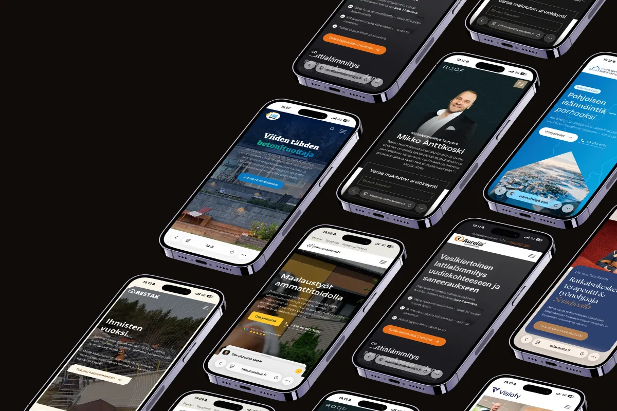 Me aloitamme maksuttomalla vedoksella. Näet etukäteen, miltä liiketoimintaa ja myyntiä tukevat sivut näyttävät. Koet millaista yhteistyö ja kädenjälkemme on ja päätät vasta sitten.