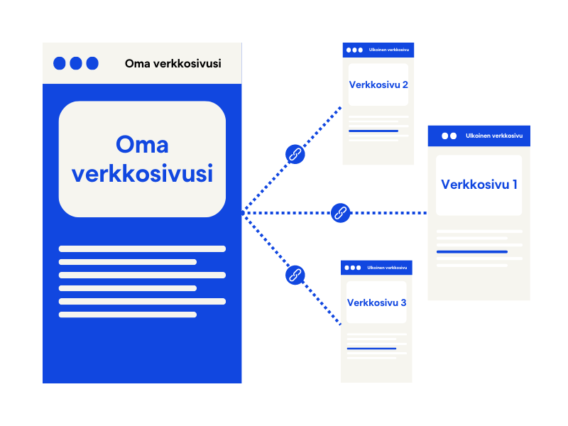 Yksi vahvimmista signaaleista ja yksi yleisesti vahvimmista sijoitustekijöistä on ulkoiset linkitykset muista verkkosivustoista sivustoosi osoittavat linkit.