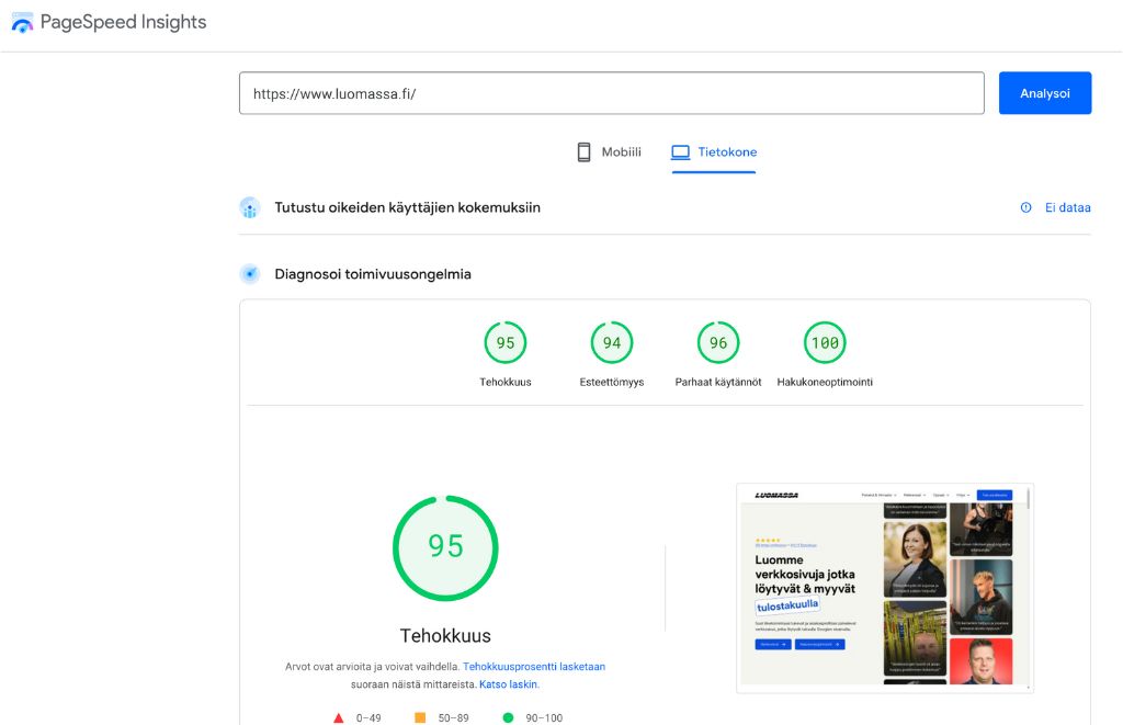 - Sivun nopeus: Google sijoittaa nopeammat sivut korkeammalle hakutuloksissa, koska ne tarjoavat paremman käyttäjäkokemuksen.
