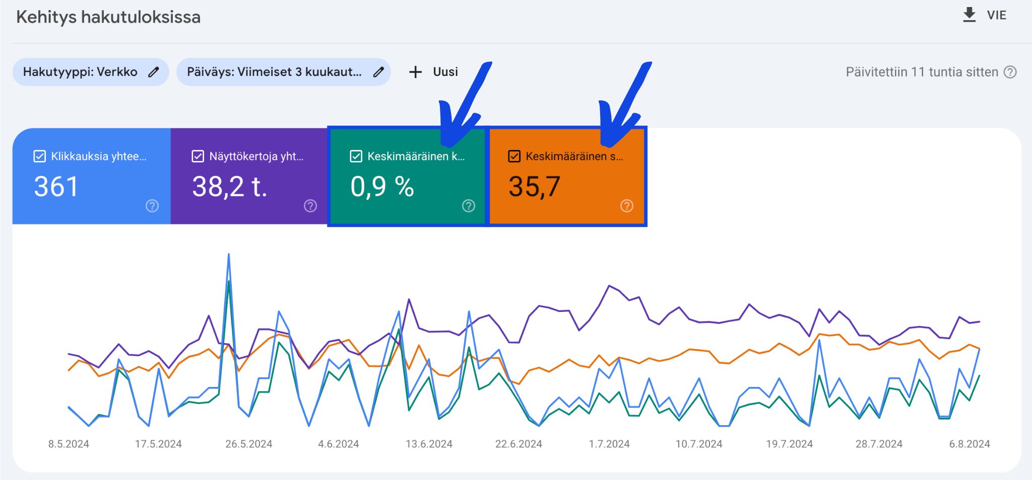 Varmista, että "Keskimääräinen CTR" ja "Keskimääräinen sijoitus" ovat valittuina.