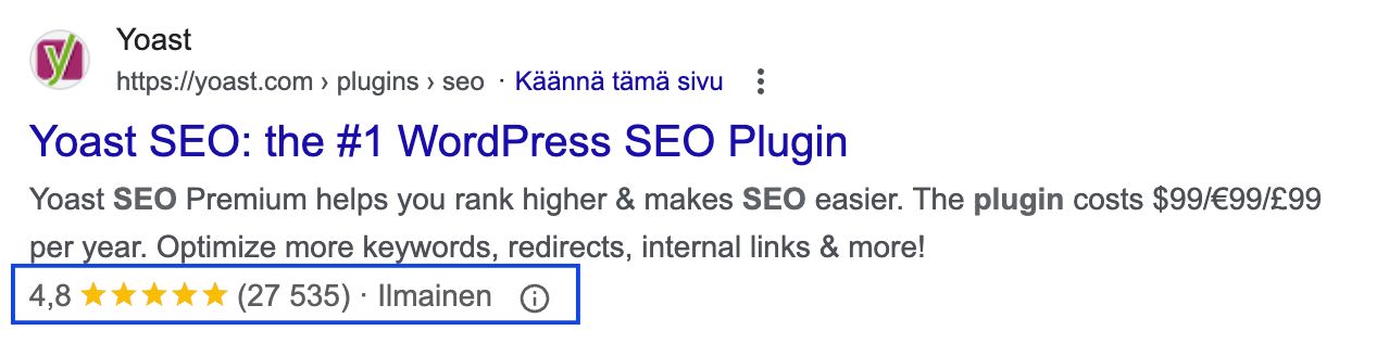 Ne kannustavat käyttäjiä klikkaamaan sinun ilmoitustasi muiden sijaan ja voivat vaikuttaa orgaaniseen klikkausprosenttiin (CTR) positiivisesti tai negatiivisesti.